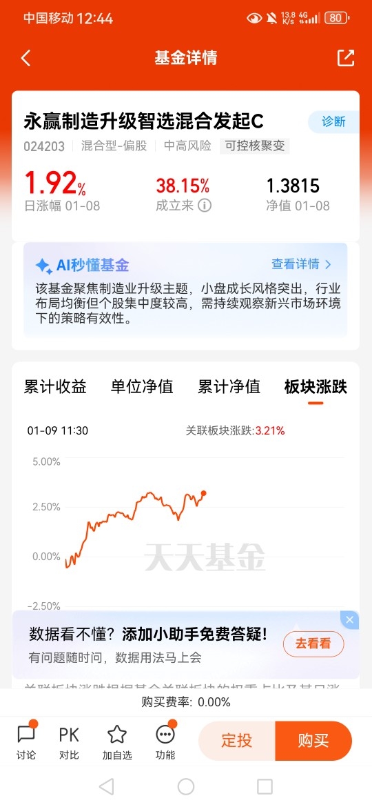 $永赢制造升级智选混合发起C$ 是全市场唯一聚焦可控核聚变主动基,稀缺性强。率先低位布局,精准卡位,聚焦性强,纯度高,弹性足,一起来看看它最近的业绩表现吧,昨日上涨+1.92%,成立以来涨幅+38.15%,有一起布局的小伙伴嘛,嘿嘿#2025给我赚最多的基金#