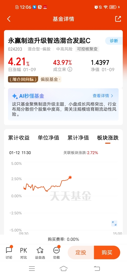 $永赢制造升级智选混合发起C$提前蹲一波,今天估值大涨近3个点,近一周涨幅13.