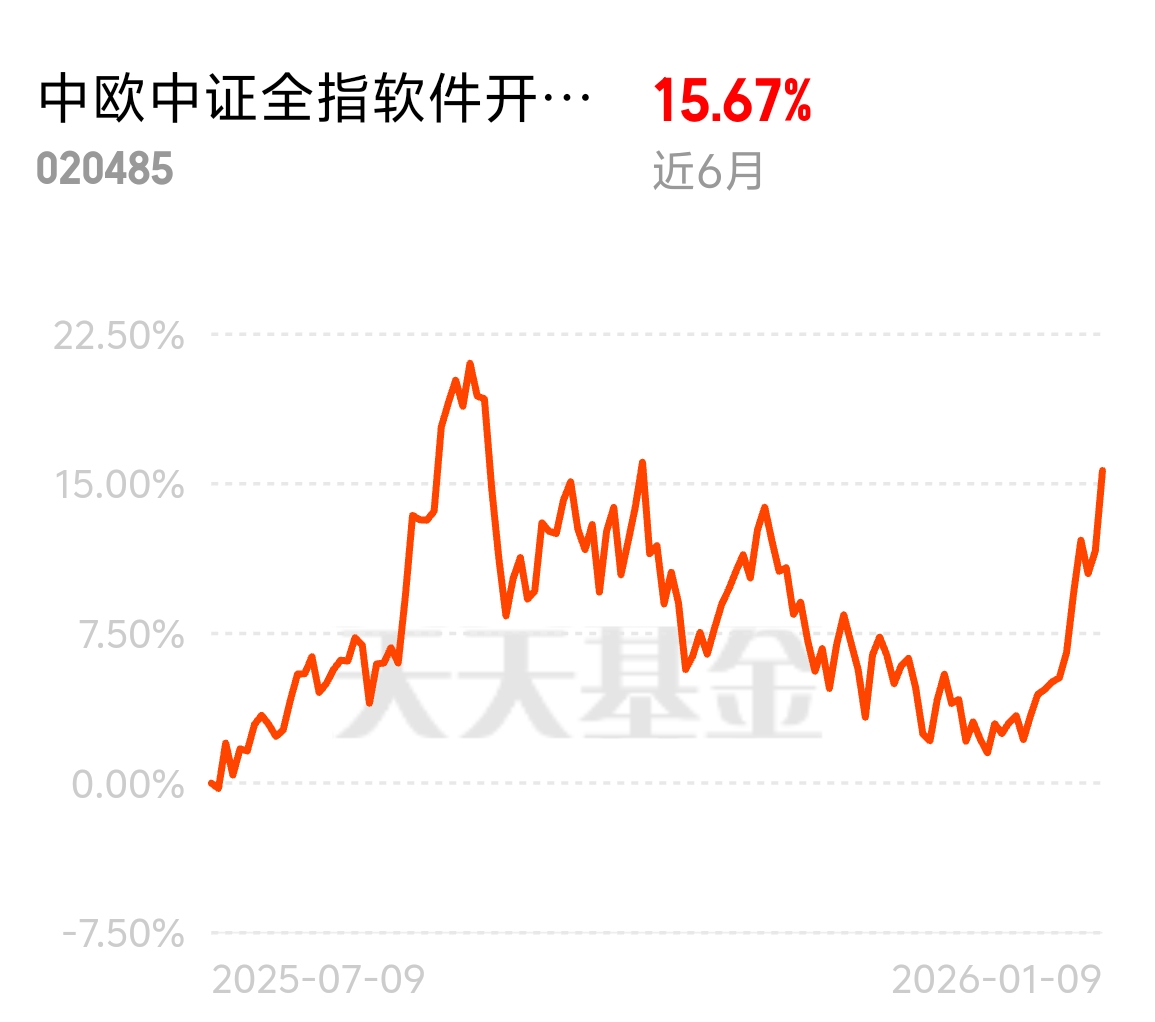 外资都在大举买入中国科技股,上周五软件开发板块还获超 80 亿元主力资金净流入。资源类弹性远不如科技,当下该积极配科技,中欧中证全指软件开发指数发起 C 近 6 月 15.67%,聚焦 AI 和软件龙头,精准捕捉行业红利。$中欧中证全指软件开发指数发起C$