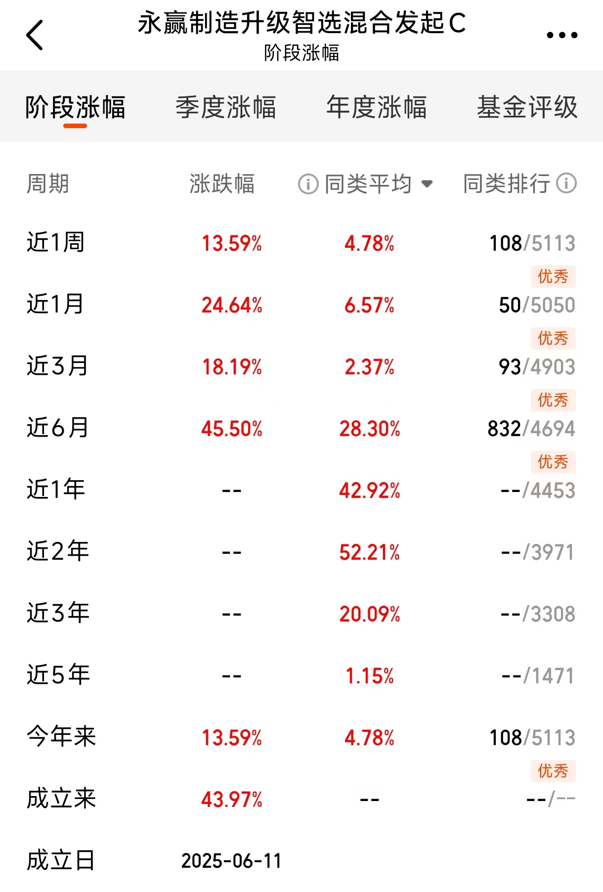 作为市场上唯一明确布局可控核聚变的主动管理基金,永赢制造升级智选混合发起C(024203)的业绩表现尤为亮眼。该基金精准捕捉上游材料与设备制造的先发优势,近1月上涨24.64%,近3月上涨18.19%(同期同类平均收益为负),近6月涨幅达45.5%,成立以来累计收益43.97%。这样的成绩并非偶然——年初以来万得核聚变概念指数涨幅已超过65%,而该基金重仓的超导材料、真空设备等领域,正是新兴产业爆发期最早受益的环节。