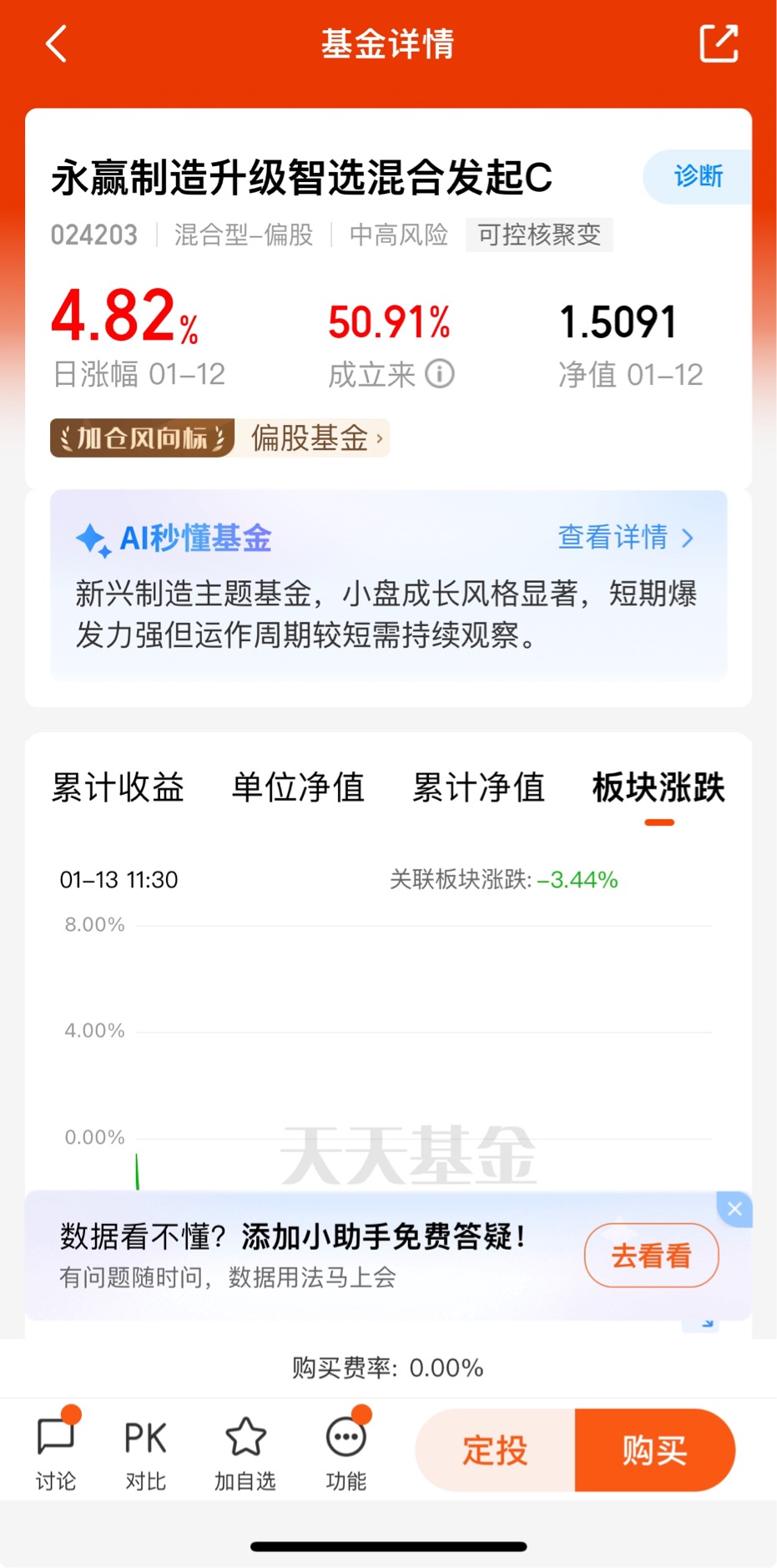 $永赢制造升级智选混合发起C$昨天收4.82%,近一周收14.76%,近一个月收