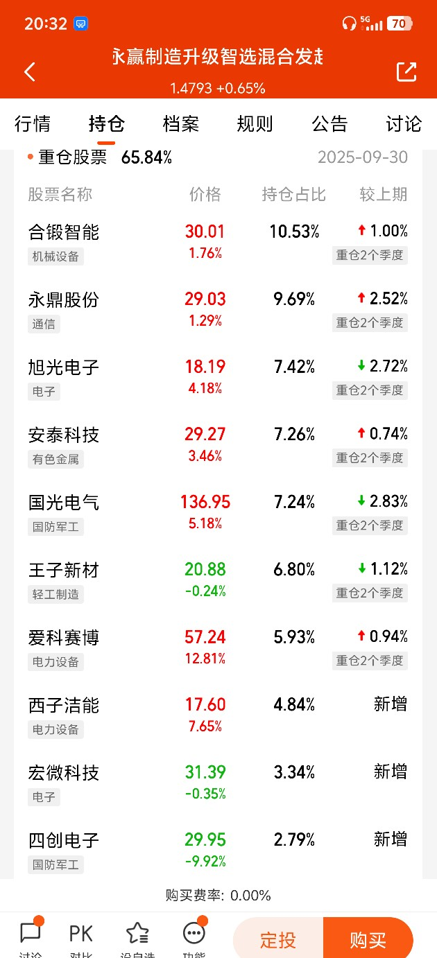 $永赢制造升级智选混合发起C$基金经理,重仓股票涨幅和基金涨幅0.65差距比较大