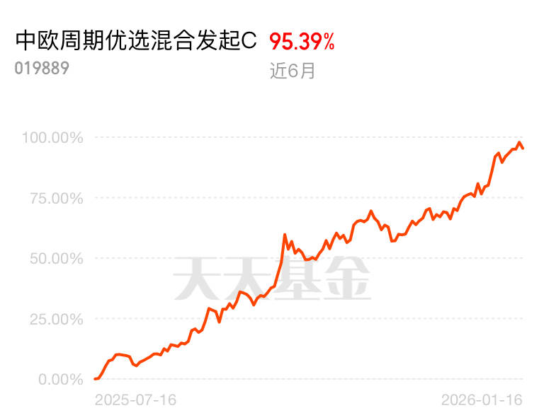 2026 周期板块行情火热,有色金属成最强主线之一,资金持续流入!中欧周期优选混合发起 C 风格鲜明贴合主线,行业集中度高,近 6 月涨 95.39%,支撑电网建设的能源金属策略更稳健,在同类基金里表现拔尖,值得关注。