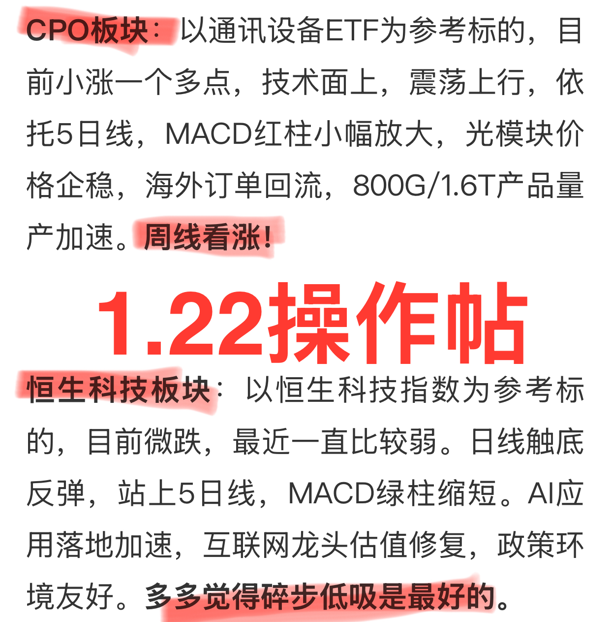 宝子们!多多的预判直接焊死标准答案!前几天全网还在慌商业航天能不能续涨、CPO走向如何、港股会不会破位,就我天天喊“顺周期+政策主线拿稳不慌,港股磨底就是送机会”,上周五1月23日行情一出来,是不是又被我狠狠拿捏!跟着我的老铁是不是账户红到晃眼,没跟上的赶紧点关注,春节前的红包行情可别再错过!
