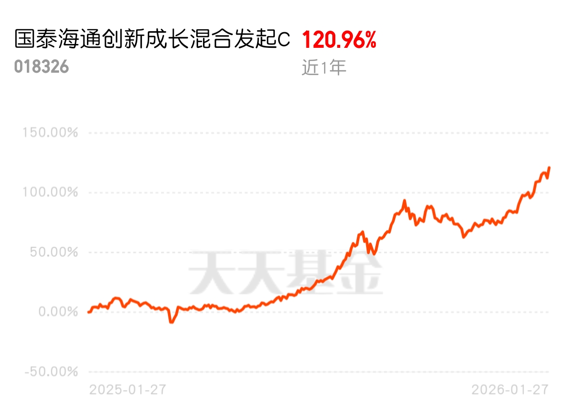 太能涨了!国泰海通创新成长混合C今晚飙4.11%,近一年收益超120%,科技布局