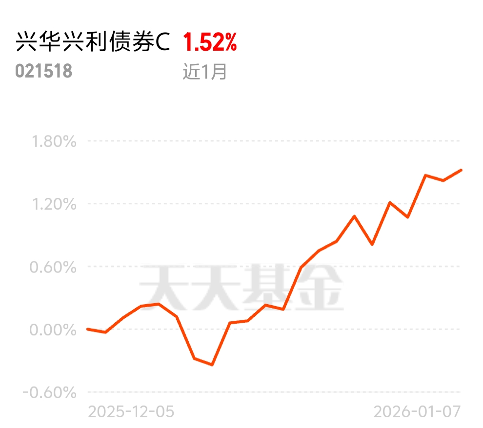 近一个月市场没啥行情,好多产品都躺平了,$兴华兴利债券C$ 却一直稳,昨天又赚 10 个蛋,太给力了!它的秘诀就是 “双线作战”:债券端抓利率债和信用债的机会,股票端抓结构性行情,不依赖单一市场,多元配置分散风险,这种全面的打法,真的太靠谱了。