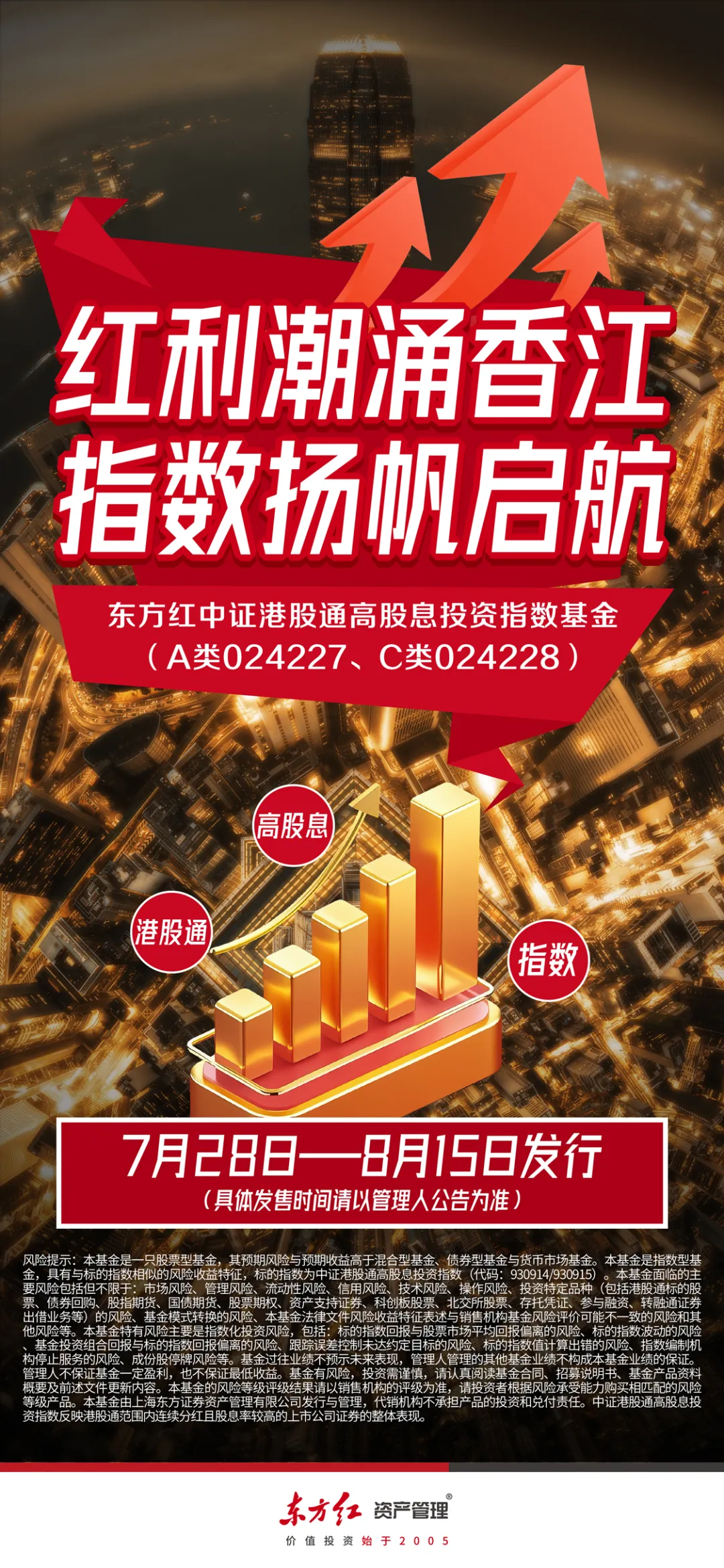 风险提示:本基金是一只股票型基金,其预期风险与预期收益高于混合型基金、债券型基金与货币市场基金。本基金是指数型基金,具有与标的指数相似的风险收益特征,标的指数为中证港股通高股息投资指数(代码:930914/930915)。本基金面临的主要风险包括但不限于:市场风险、管理风险、流动性风险、信用风险、技术风险、操作风险、投资特定品种(包括港股通标的股票、债券回购、股指期货、国债期货、股票期权、资产支持证券、科创板股票、北交所股票、存托凭证、参与融资、转融通证券出借业务等)的风险、基金模式转换的风险、本基金法律文件风险收益特征表述与销售机构基金风险评价可能不一致的风险和其他风险等。本基金特有风险主要是指数化投资风险,包括:标的指数回报与股票市场平均回报偏离的风险、标的指数波动的风险、基金投资组合回报与标的指数回报偏离的风险、跟踪误差控制未达约定目标的风险、标的指数值计算出错的风险、指数编制机构停止服务的风险、成份股停牌风险等。基金过往业绩不预示未来表现,管理人管理的其他基金业绩不构成本基金业绩的保证。管理人不保证基金一定盈利,也不保证最低收益。基金有风险,投资需谨慎,请认真阅读基金合同、招募说明书、基金产品资料概要及前述文件更新内容。本基金的风险等级评级结果请以销售机构的评级为准,请投资者根据风险承受能力购买相匹配的风险等级产品。本基金由上海东方证券资产管理有限公司发行与管理,代销机构不承担产品的投资和兑付责任。