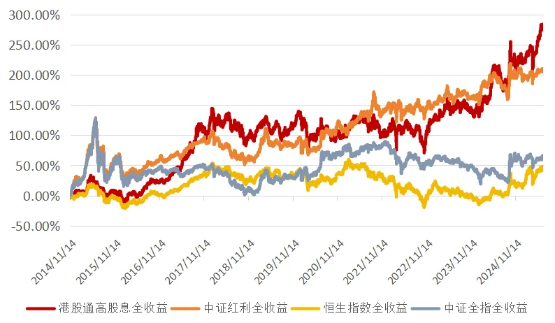 注:数据来源Wind,统计区间2014.11.14——2025.6.30。全收益指数包含了成分股的分红,并对分红自动进行红利再投资。