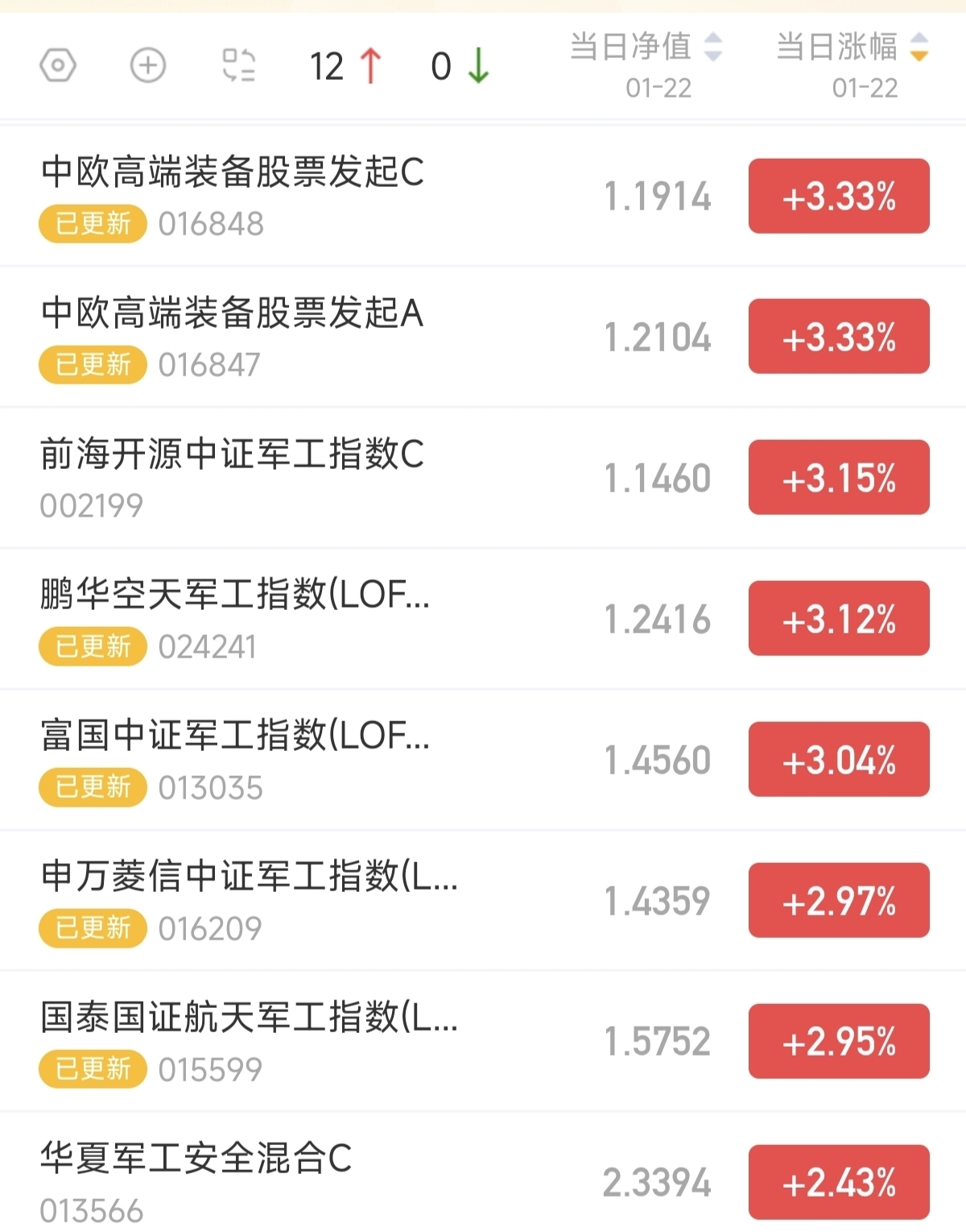 $鹏华空天军工指数(LOF)I$ 3.12%。