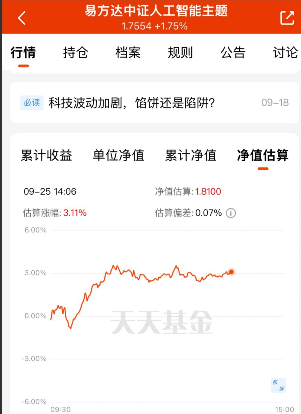 AI 板块形势正盛,今天涨幅喜人,机会要抓紧$易方达中证人工智能主题ETF联接C$