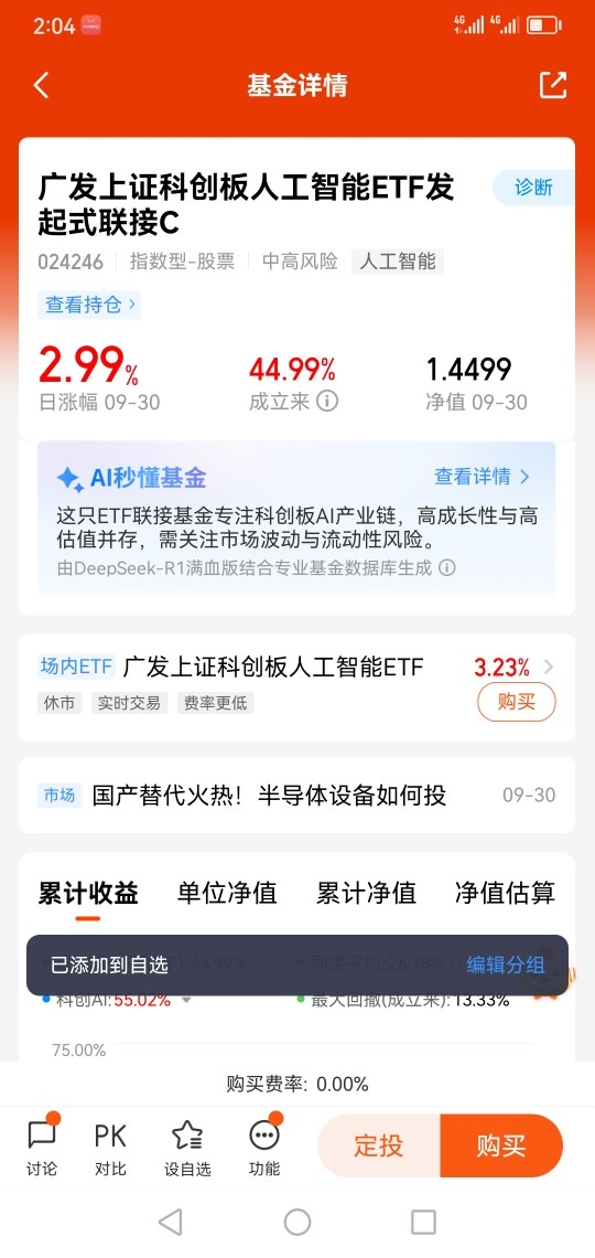在经过以上认真思考之后,我拥抱了广发上证科创板人工智能ETF发起式联接C(024246),因为它重仓的都是人工智能行业内最优质的公司,它们具备稳定的盈利模式与强大的核心竞争力。@广发基金