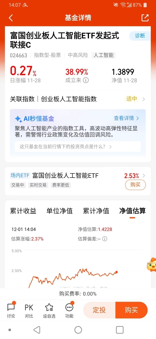 人工智能产业链布局更精准,捕捉机会无死角,全面覆盖AI“硬件+软件+应用”,富国创业板人工智能估值估值上涨2.37%,近一周上涨7.76%$富国创业板人工智能ETF发起式联接C$