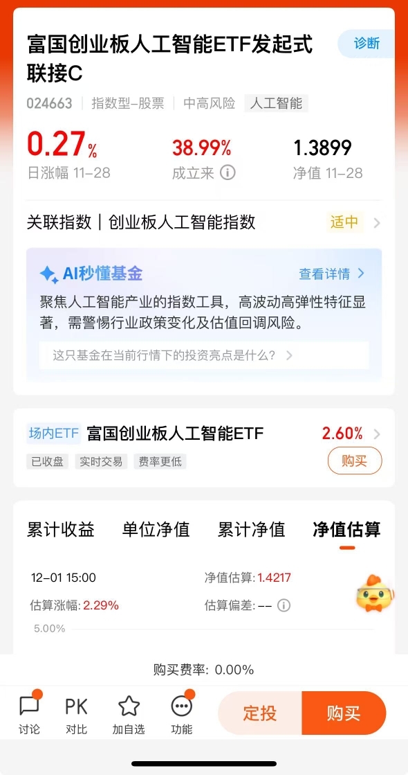 广发估值1.51%,$富国创业板人工智能ETF发起式联接C$估值2.26%,人工