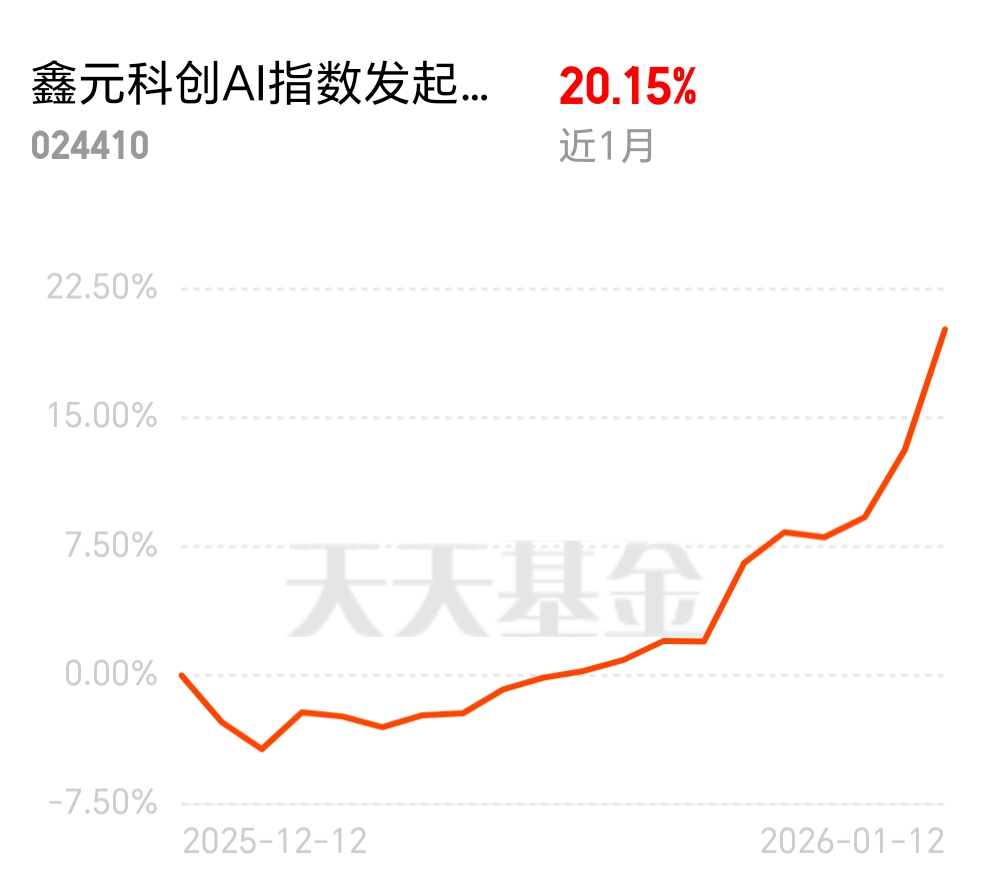 6.20%的单日涨幅+近月20.15%!鑫元科创AI指数发起式C踩中AI芯片与算法风口,政策产业双利好下,持仓安全感拉满