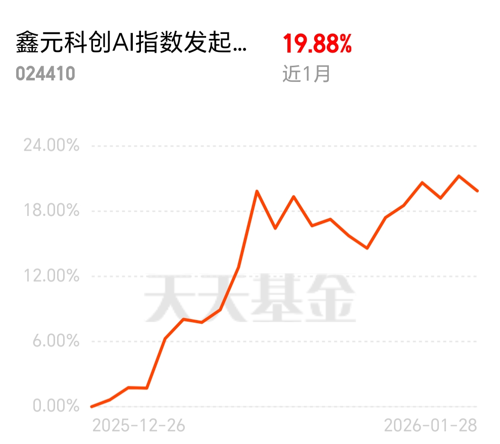 鑫元科创AI指数C近1月涨19.88%,虽短暂回调,但AI赛道长期高景气度不变,适合趁波动布局,分享科技成长红利。