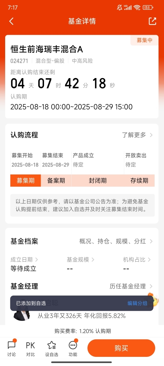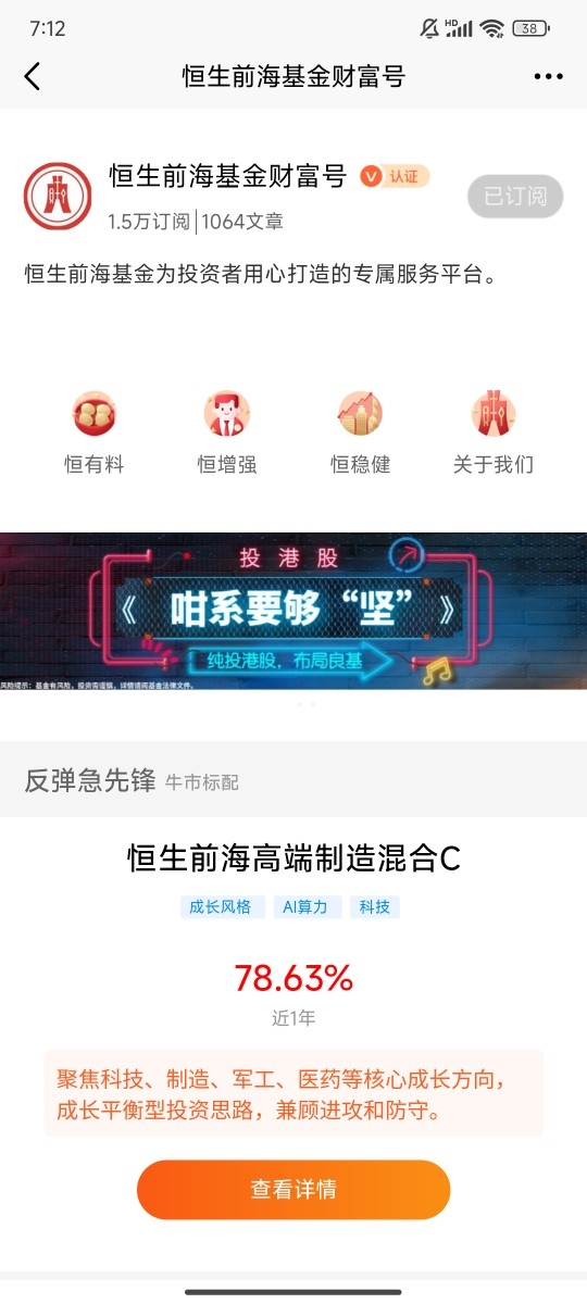 如果你还没上车,现在股市到了三千八百点,与其盯着那些凶险的概念股犹豫,不如干脆认养一只现金牛——恒生前海瑞丰混合C正在首发,趁现在布局,等于给资产加了道安全锁。要是你已经在市场里摸爬滚打一阵子了,3800点之上更得留个心眼,拿部分资金配置这类有安全边际的资产,就算后面市场震荡,手里有现金牛托底,心里也能踏实不少,投资体验只会舒服不会差。