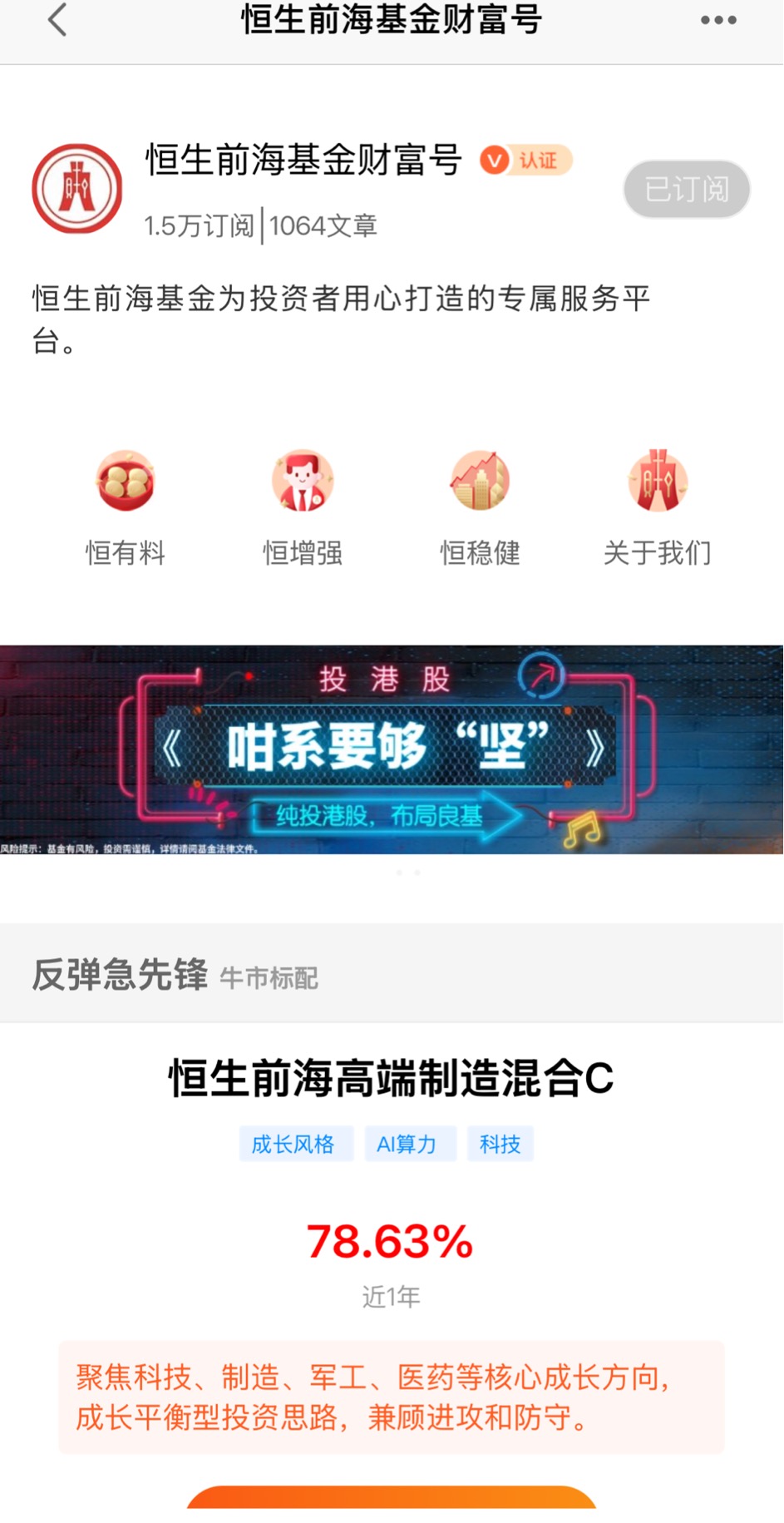 管理团队专业:恒生前海基金拥有丰富投资经验和强大研究团队,为基金决策提供专业支持。
