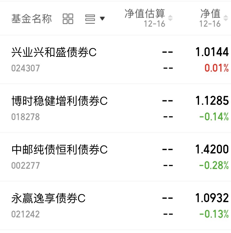 $中邮纯债恒利债券C(OTCFUND|002277)$今天碎28个蛋