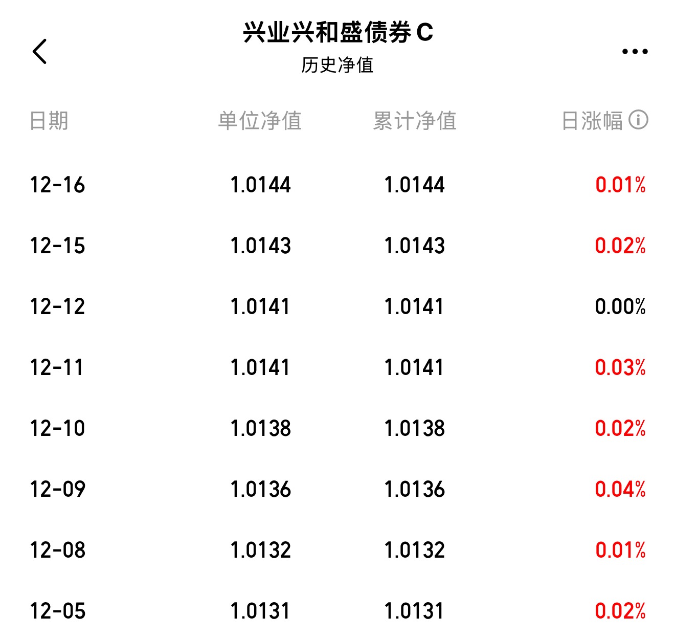 12月16日报蛋:兴业兴和盛债劵C今日收1个蛋!