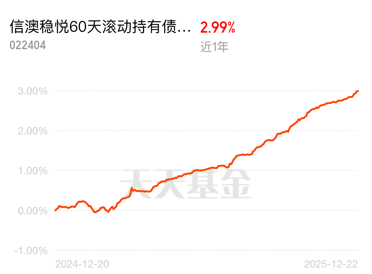 信澳稳悦60天稳赚实力在线!三个月轻松攒下103个蛋,几乎日日正收益不跑偏,中长债打底超靠谱,闲钱放这坐等增值太舒心 $信澳稳悦60天滚动持有债券C$