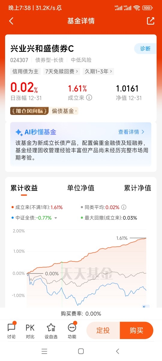 对于基金投资者而言,运作成本是影响实际收益的重要因素,尤其是对于收益相对稳定的债券基金来说,费率优势能够直接转化为投资者的收益。兴业兴和盛债券C在费率设置上极具竞争力,产品不收取申购费和赎回费(持有一定期限后),管理费和托管费也处于行业较低水平。低廉的运作成本,意味着投资者的收益能够得到更充分的留存,有效提升了投资的性价比。