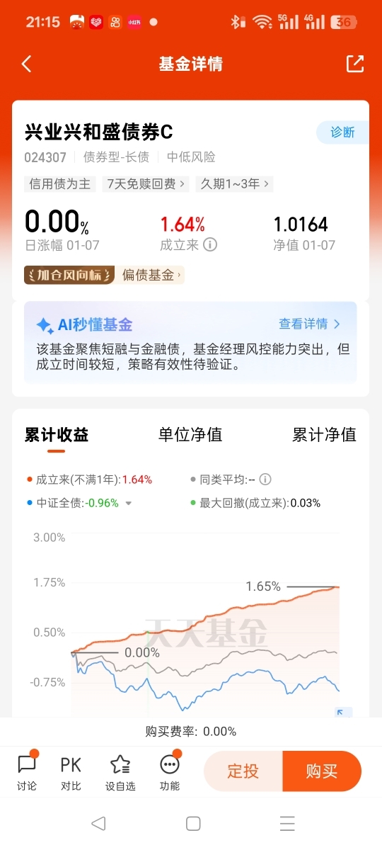 这款基金的费率很友好,C 类份额免申购费,持有满 30 天还能免赎回费,不管是短期灵活配置还是长期持有都划算。背靠兴业基金的信用研究和风控能力,基金经理擅长通过调整久期和精选个券增厚收益,成立以来净值稳步抬升,在震荡市中能给投资组合稳稳的安全感。@兴业基金