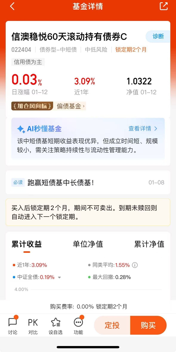 谁说债基没看头?信澳稳悦60天三个月就收了104个蛋,几乎天天正收益,拿着不动就
