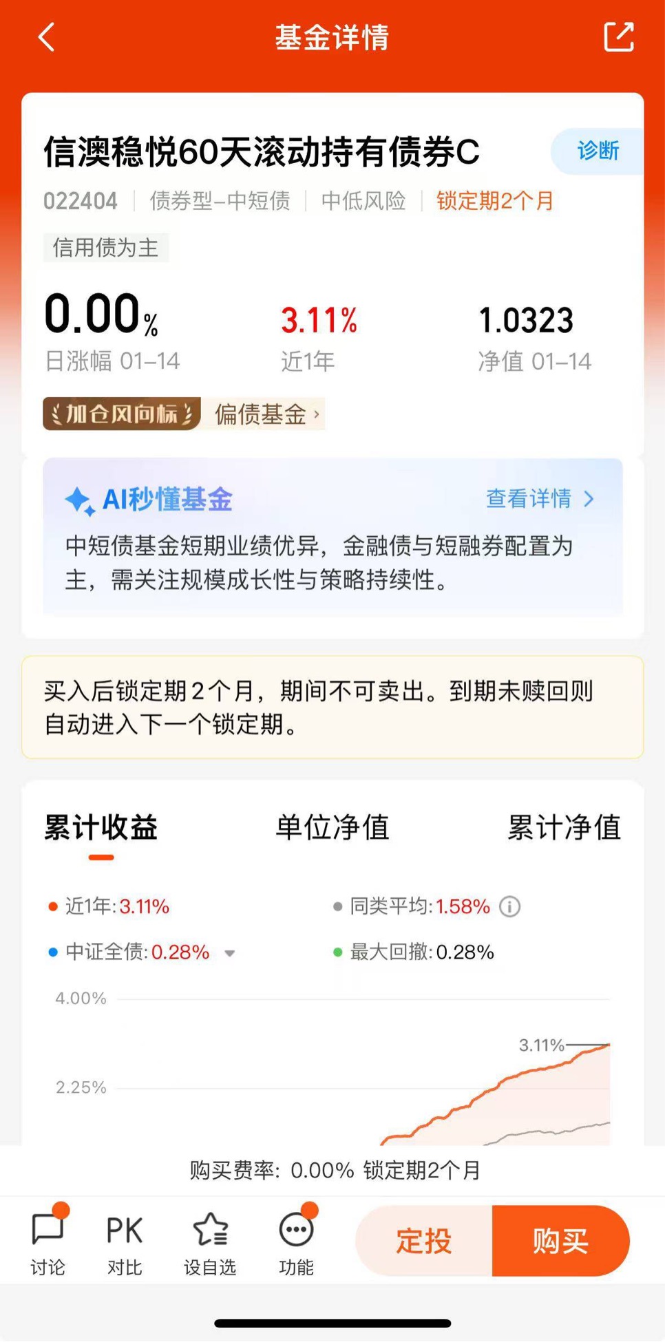 现在债市行情一路向好,选对基金真的太省心!$信澳稳悦60天滚动持有债券C$就是我