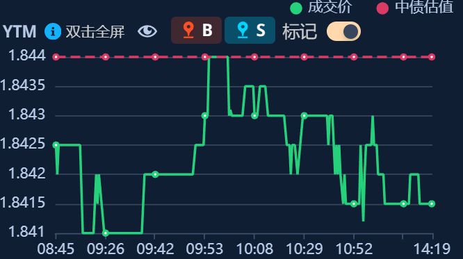二、十年期国债收益率:1.8415 -0.0025%(国债收益率越涨,债市越跌,两者反向关系)