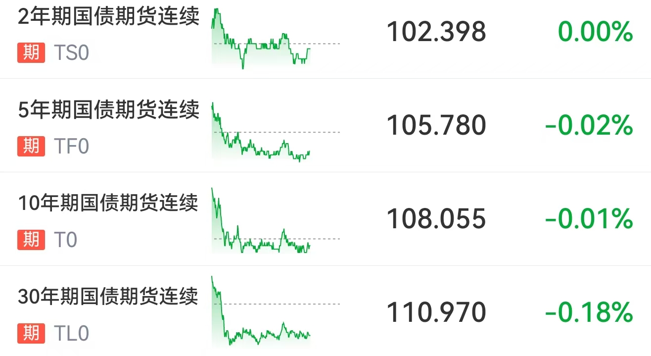一、国债期货:-0.019%(反映市场对未来债市预期,国债期货越涨,债市越涨,两者正向关系)