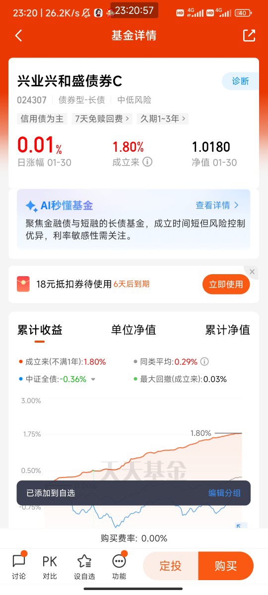 #开年投资顺# #4200点久攻不下 盘整十日何去何从?# 选择投资安全垫,核心要选低波动、稳收益、强风控的固收类产品,优先看净值稳定性、业绩表现和操作灵活性,才能为资产组合筑牢稳健基底。兴业兴和盛债券作为优质选择,优势十分突出:其一风控拉满,上市以来最大回撤仅-0.16%,近13个交易日零回撤,债市震荡中净值近乎稳步向上;其二业绩亮眼,近3月涨幅1%,大幅跑赢业绩比较基准,排名同类前3%;其三策略攻守兼备,以1-3年高等级信用债为核心,搭配利率债波段操作,不投股票和可转债,从根源降低风险;其四操作灵活,C类7天持有免手续费,兼顾收益与流动性,是打造投资安全垫的优质标的。