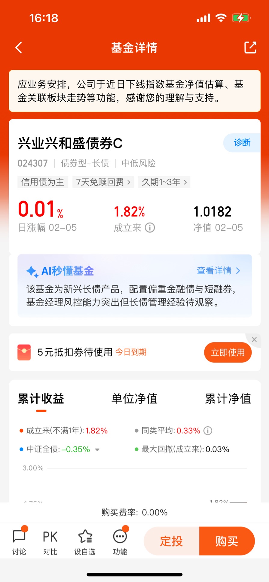 从费率来看,兴业兴和盛债券C的费率非常有优势。它的申购费率是0%,持有满7天赎回费率也是0%,只有每年0.15%的销售服务费。相比其他债基,它的交易成本更低,适合短期持有和灵活操作。比如如果你持有1年,总费率只有0.15%+0.20%(管理费)+0.05%(托管费)=0.40%,远低于同类产品的平均费率。