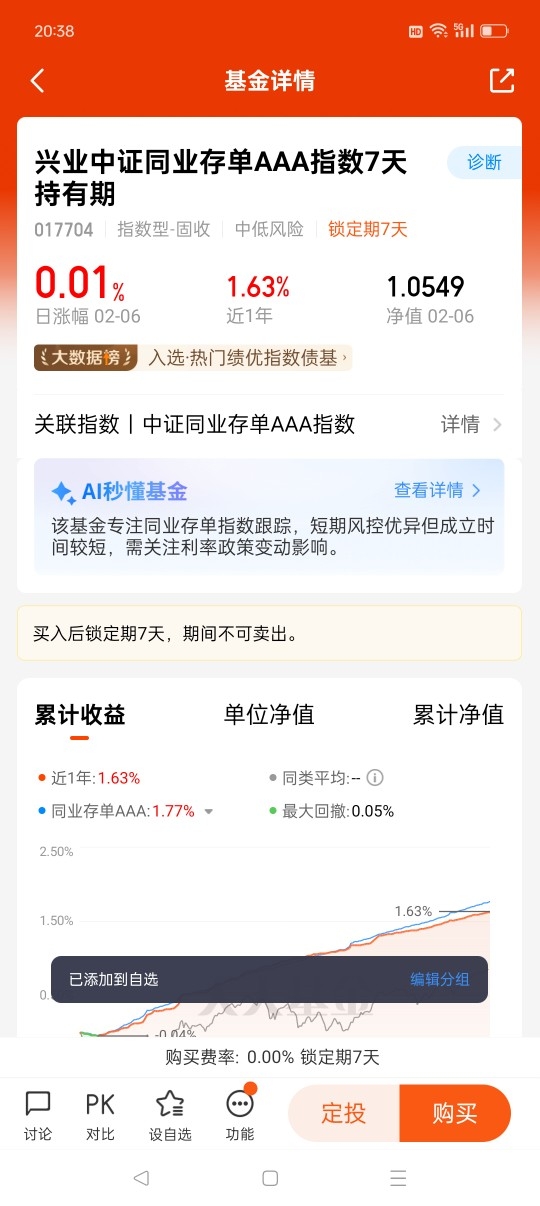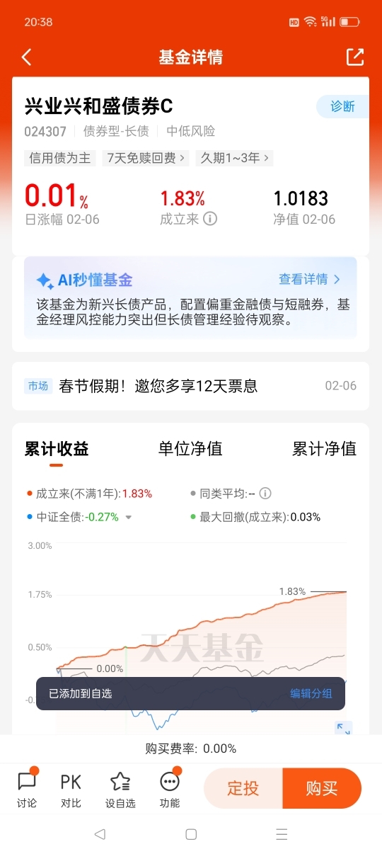 我的新年钱包增厚计划:下周配置$兴业兴和盛债券C$$兴业中证同业存单AAA指数7