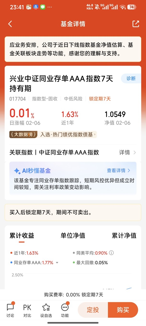 兴业兴和盛债券C作为纯债基金不投股票,聚焦高评级信用债等优质标的,近3个月波动仅0.69%,净值表现稳扎稳打,能有效抵御市场震荡风险。而且C类份额0申购费,持有超7天免赎回费,年综合费率仅0.45%,成本亲民更适合闲钱布局。在无风险利率下行的背景下,这类纯债基金既能守住本金安全,又能追求超越货基的稳健收益,完美匹配节前闲置资金的增值需求。@哈哈哈k @兴业基金