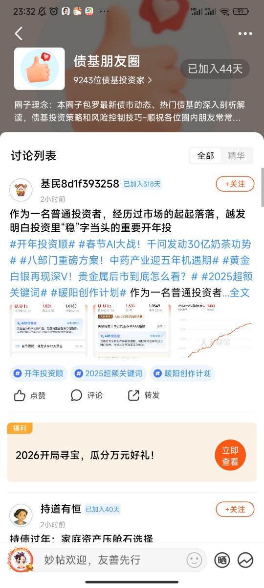春节假期长,持债能稳稳拿收益,比空仓或放货币基金更划算,也不用天天盯盘操心。先把这部分资金放在债基里当“安全垫”,等年后市场明朗了,再看机会调整。@无畏的董婧杨 @兴业基金