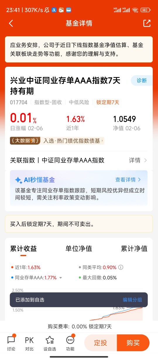 今年开年市场震荡不断,板块轮动快、波动也大,节前不想提心吊胆盯盘,更不想让账户大起大落,所以我坚定选择持债过年,重点拿的是兴业兴和盛债券C(024307),把防御做扎实,先求稳再谈收益。