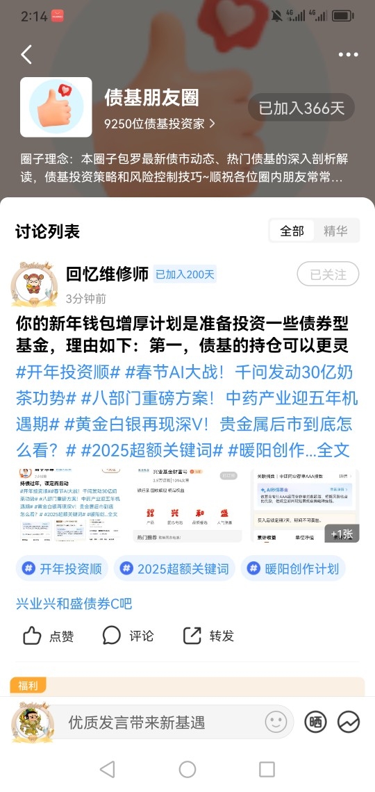 #开年投资顺# #春节AI大战!千问发动30亿奶茶功势# #八部门重磅方案!中药产业迎五年机遇期# #黄金白银再现深V!贵金属后市到底怎么看?# #2025超额关键词# #暖阳创作计划# 在新的一年,我会把目光放在债券型基金上,我是如此思考的: