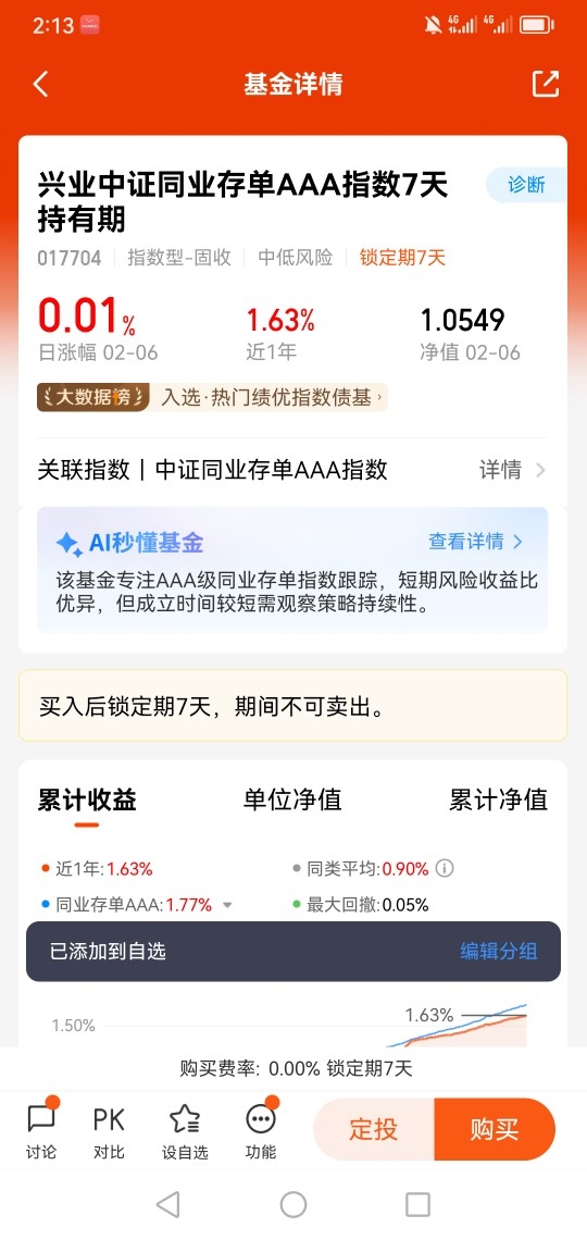 在经过以上的认真的思考之后,我把兴业兴和盛债券C(024307)基金加入到了我的基金自选池,因为它最近6个月的表现是有目共睹的。@兴业基金 @活期通