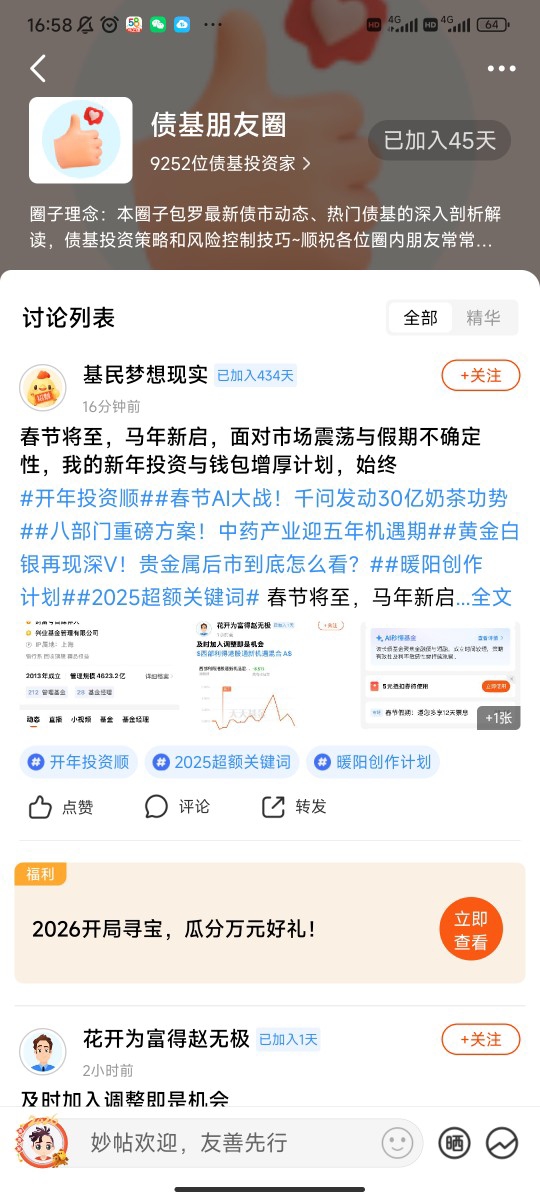 C类没有申购费,持有超过7天赎回费也低,进出灵活,适合短期配置。春节假期长,持债能稳稳拿收益,比空仓或放货币基金更划算,也不用担心里外波动。我就把这部分资金放在债基里当“安全垫”,先守住本金、赚点稳收益,等年后市场明朗了,再看机会调整。@兴业基金 @无畏的董婧杨