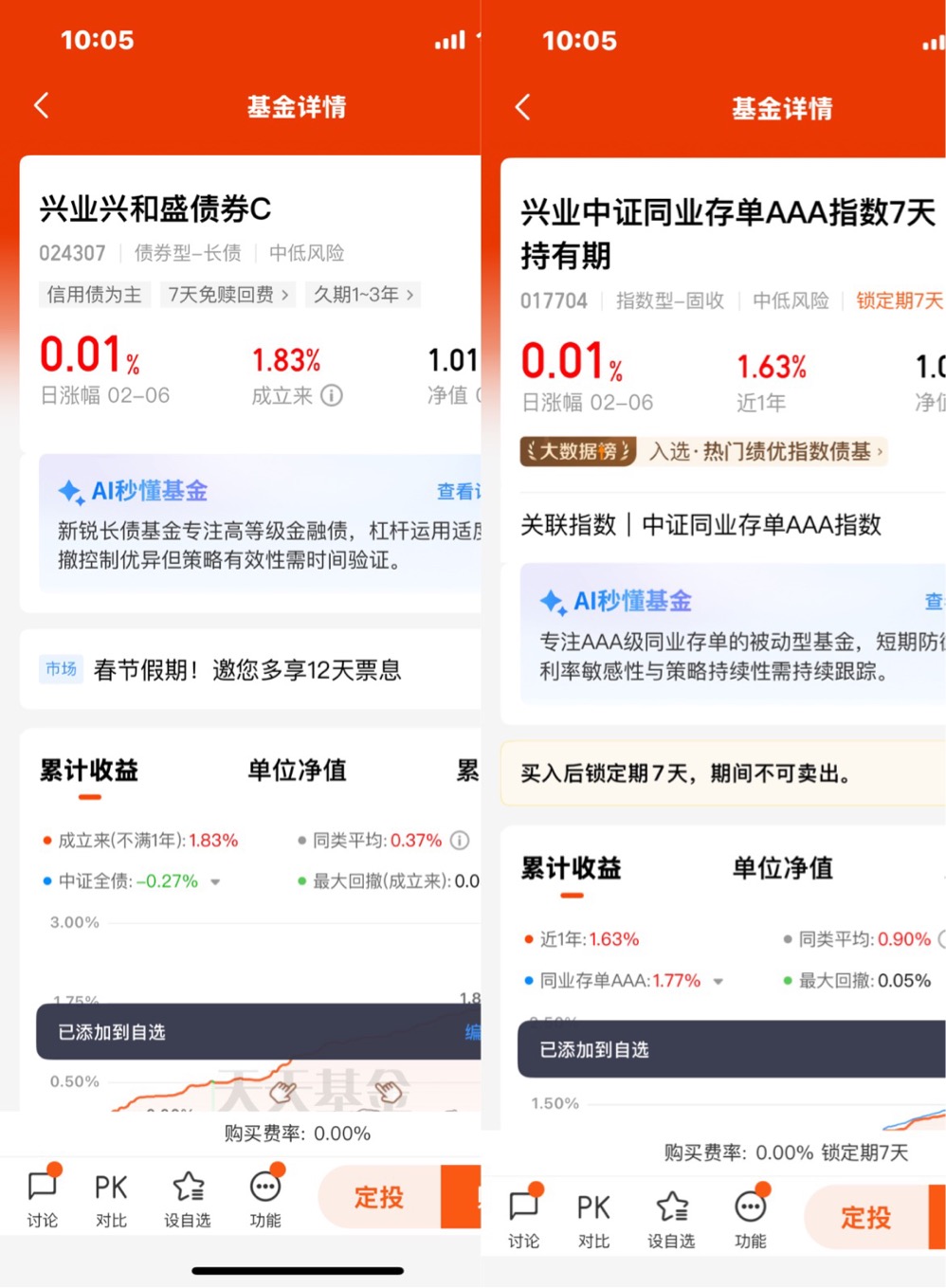 想让春节钱包增厚而不是变扁,赶在2月12日前买入,享受多天的票息收益哦!