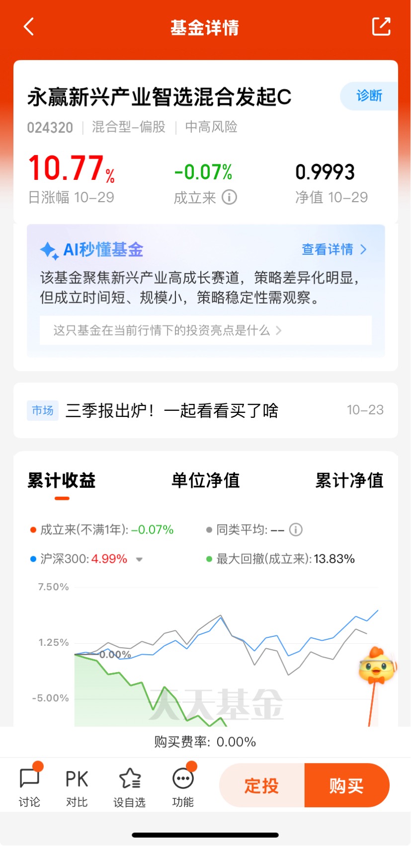 #高盛看多A股:慢牛正形成 还有约30%上涨空间# 北交所近期行情表现亮眼,2025年10月29日北证50指数大幅上涨超8%,成交量显著放大,市场活跃度明显提升。$永赢新兴产业智选混合发起C$ 今天暴涨10.77%太强了!近一周收益14.30%,该基金专注于卫星互联网这一具有战略意义的新兴产业,契合国家在数字经济、新基建等领域的长期规划,有望受益于行业快速发展带来的红利。