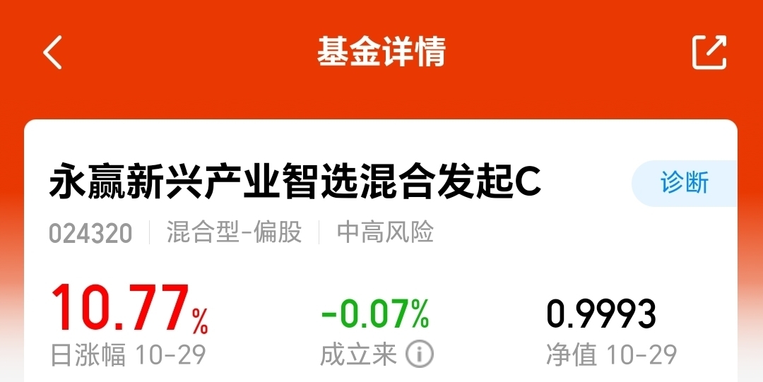 永赢又出一只“猛基”! 今天北证50指数大涨8.41%,$永赢新兴产业智选混合发起C$ 今天竟然涨了10.77%,涨得比$永赢先锋半导体智选混合发起C$ 还猛!看了下持仓,这只基重点关注北交所,北交所的涨跌幅是30%,弹性特别大,赶上行情的时候真的够刺激。