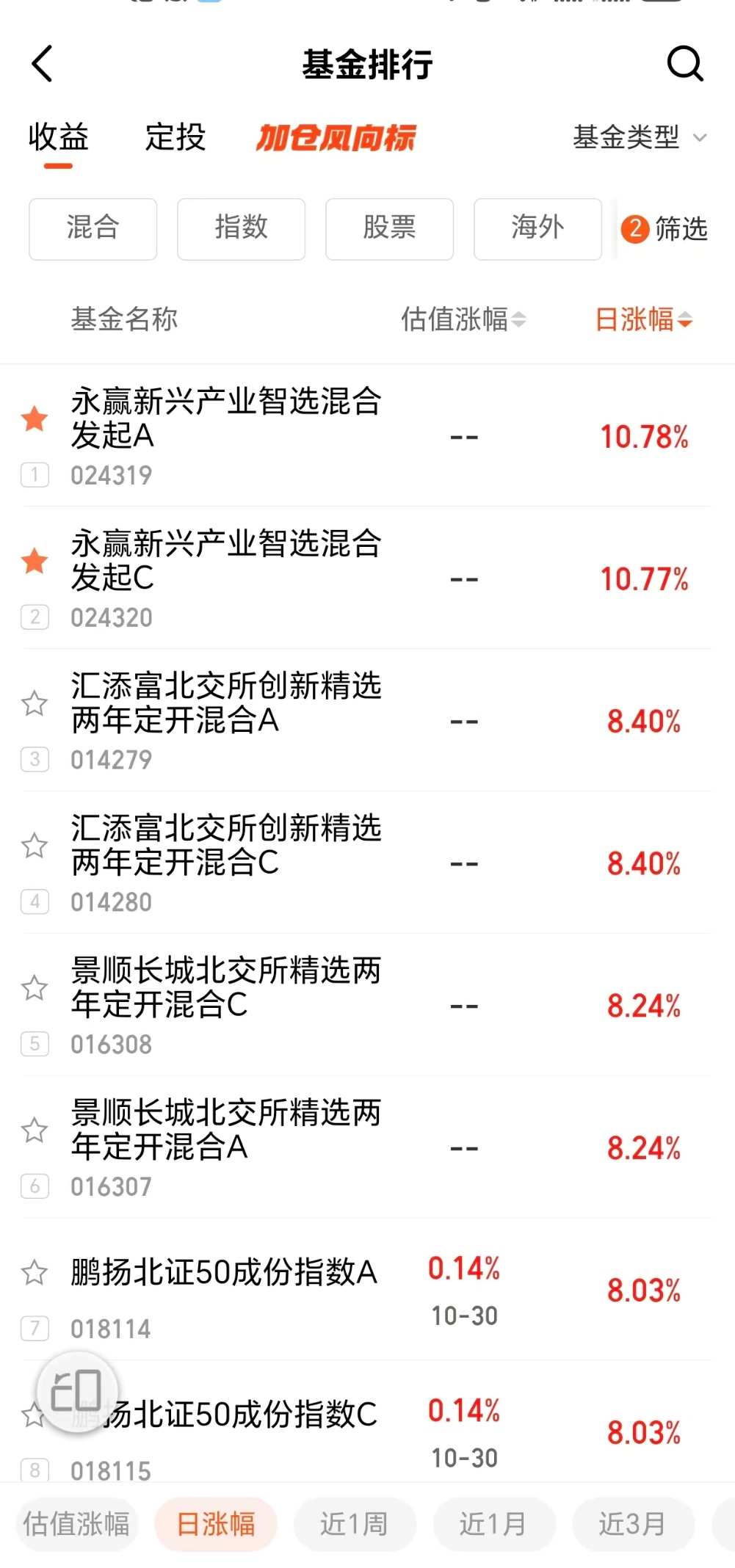 近期北交所板块估值回归合理区间,成长机遇持续释放,$永赢新兴产业智选混合发起C$ (024320)深度聚焦这一赛道,昨日单日强势上涨10.77%,单日涨幅全市场第一!以亮眼表现展现了主动选股的强大实力。