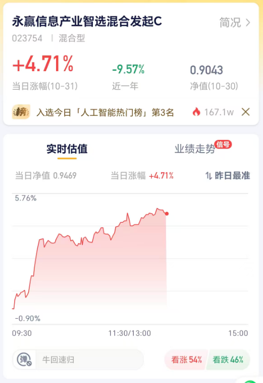 消息面上,北交所将优化产品制度供给,研究引入盘后固定价格交易,消息一出,北证50指数放量大涨8.41%,而$永赢新兴产业智选混合发起C$ (024320)深度聚焦北交所特新专精,29日单日强势上涨10.77%,近一周大涨12.89%,今天逆势涨近5%!用实力印证了其永赢智选系列黑马的称号。