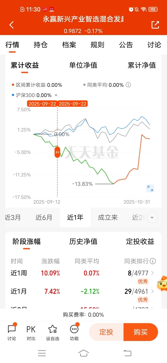 $永赢新兴产业智选混合发起C$弹性超高,近一周涨幅10.09%,刚成立不久,趁着