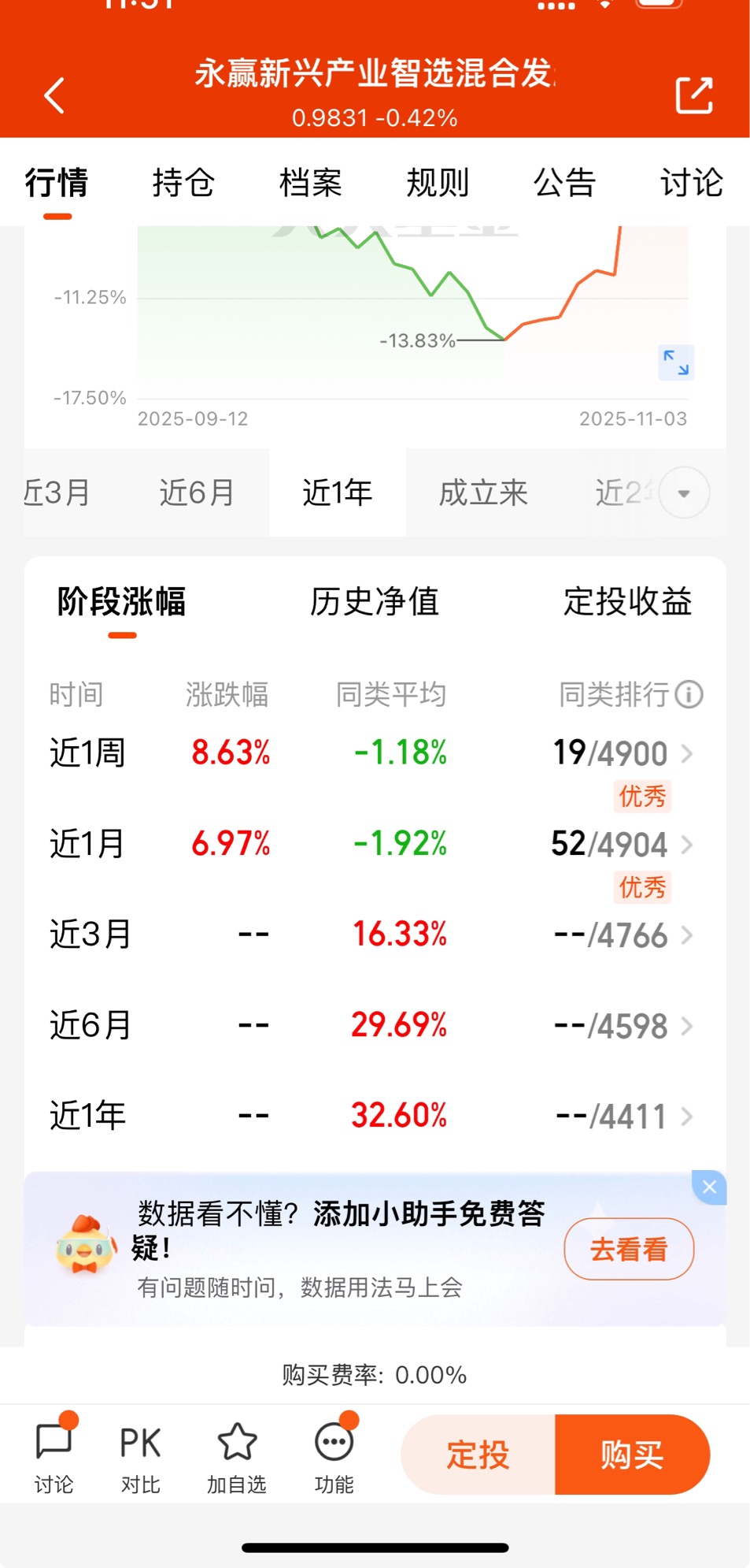 $永赢新兴产业智选混合发起C$昨天调整今天加仓起来吧,近一周收8.63%,表现优