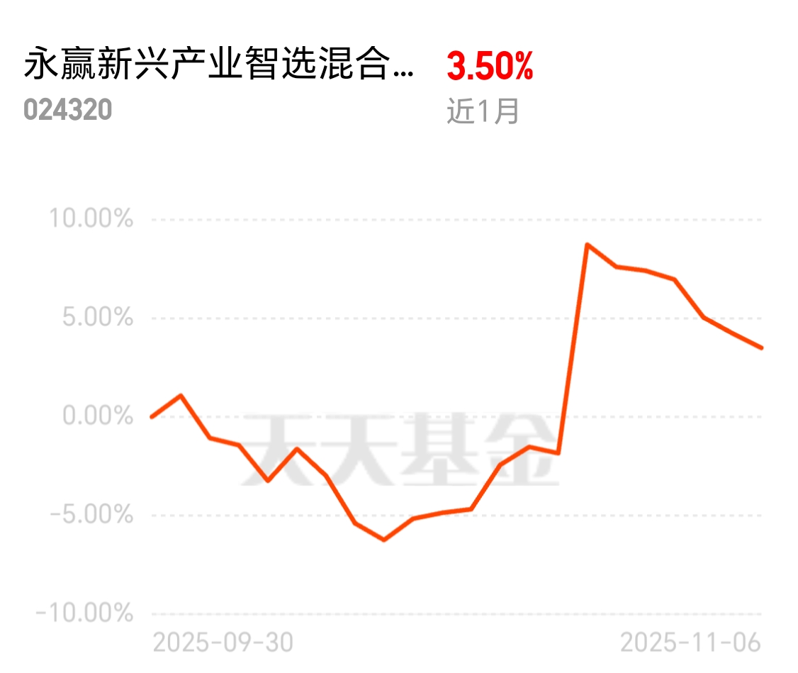 $永赢新兴产业智选混合发起C$ 主要聚焦电子、计算机、汽车等新兴产业赛道,行业分布契合科技创新与产业升级方向看业绩,近一月涨收涨3.50%,10月29日单日涨幅超过10%,成立不到二个月,收益优于同类均值,我认为,目前市场依然是科技牛市,趁今天倒车接人,加仓了。$永赢新兴产业智选混合发起C$