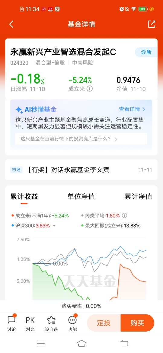 $永赢新兴产业智选混合发起C$趁着波动逢低布局,也是布局时机,近一个月涨幅4.2