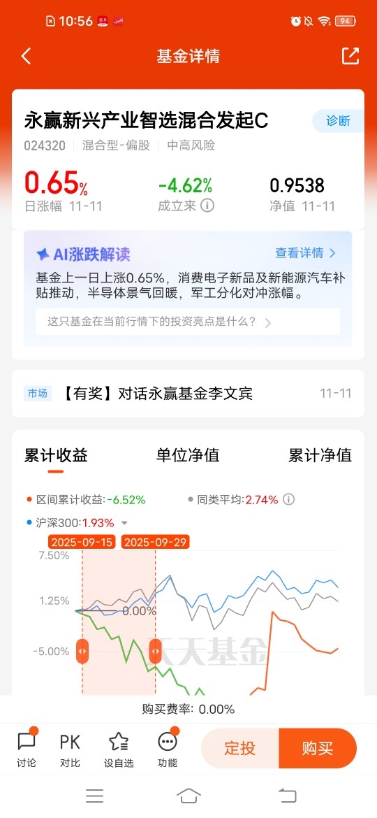 $永赢新兴产业智选混合发起C$目前也是布局时机,刚成立不久更有动力,昨天涨幅0.