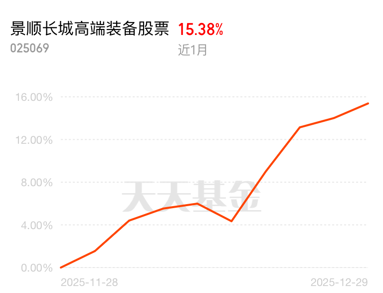 今天商业航天小幅调整,芯片半导体装备成为市场领涨主力。$景顺长城高端装备股票$ 近 1 月 15.38%,昨日涨幅 1.21% 连涨 4 天,正冲刺 5 连涨。它不光搞航天,还涵盖军工、机器人,今天估值大概率收红。